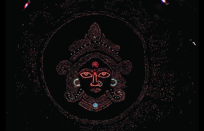 કેસરિયા ગરબામાં 51 હજાર દીવડાની મહાઆરતીમાં અલૌકિક આકૃતિ, કલ્ચરલ ફોરમમાં મહાદેવીની મુખાકૃતિ