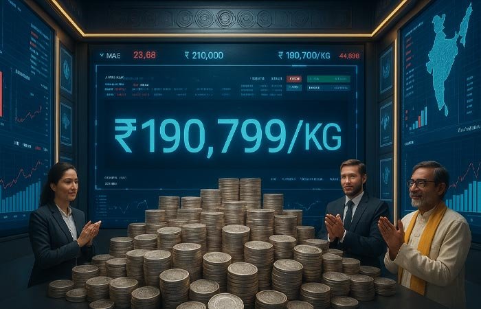 બુધવારે ખઈડ પર કારોબારની શરૂઆતમાં ચાંદીનો ભાવ તેના અગાઉના બંધ ભાવ ₹1,88,064 પ્રતિ કિલોગ્રામની તુલનામાં વધીને ₹1,88,959 પર ખૂલ્યો હતો. ત્યારબાદ ગણતરીની મિનિટોમાં જ તે ₹2,735 ના વધારા સાથે ₹1,90,799 ની નવી ઊંચાઈ પર પહોંચી ગયો હતો. આ વધારા સાથે ચાંદીનો ભાવ હવે ₹2 લાખના આંકડાની ખૂબ નજીક પહોંચી ગયો છે. માત્ર આ સપ્તાહના બે કારોબારી દિવસોમાં જ ચાંદીના ભાવમાં લગભગ ₹10,000 પ્રતિ કિલોગ્રામનો ઉછાળો જોવા મળ્યો છે.