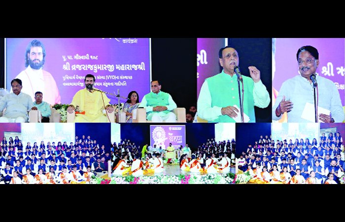 શિક્ષા અને દીક્ષા એક મંચ ઉપર નિહાળી શિક્ષણ પ્રધાન અને ગૌસ્વામી 108 વ્રજકુમારજી આનંદિત થઈ પ્રભાવિત થયા