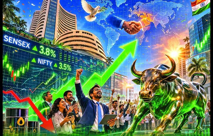 થોડા દિવસો પહેલા જ અમેરિકી રાષ્ટ્રપતિએ ઈરાનને કડક ચેતવણી આપી હતી કે જો હોર્મુઝ સ્ટ્રેટનો રસ્તો રોકવામાં આવશે, તો તેઓ ઈરાની સભ્યતાને તબાહ કરી દેશે. આ ધમકી બાદ બજારમાં અનિશ્ર્ચિતતા હતી, પરંતુ યુદ્ધવિરામની જાહેરાતે બજારને બૂસ્ટર ડોઝ આપ્યો છે. ઉલ્લેખનીય છે કે, ગઈકાલે 7 એપ્રિલે પણ બજારમાં સતત ચોથા દિવસે તેજી રહી હતી, જેમાં સેન્સેક્સ 510 પોઈન્ટ વધીને 74,617 પર બંધ થયો હતો. આજે આ તેજીએ વિરાટ સ્વરૂપ ધારણ કર્યું છે.