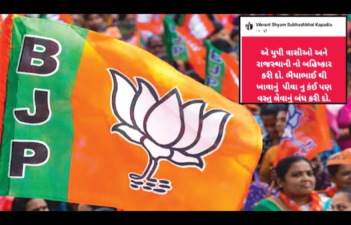 રાજસ્થાનમાં ભાજપના નબળા પ્રદર્શન બાદ સુરત શહેર ભાજપ ઉપાધ્યક્ષ તેજલબેન કાપડિયાના પતિ વિક્રાંત શ્યામ કાપડિયાએ ફેસબુક પર યુપી અને રાજસ્થાનના લોકોનો બહિષ્કાર કરવાની અપીલ કરતી વિવાદિત પોસ્ટ લખી છે.