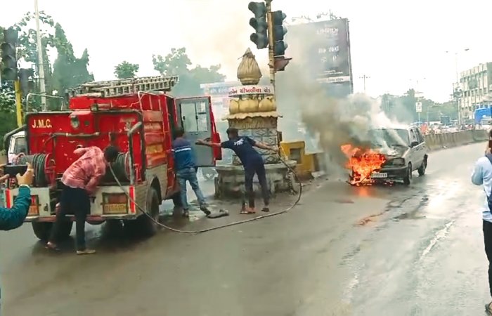 જૂનાગઢ શહેરનો ધમધમતો બસ સ્ટેન્ડ રોડ પર અચાનક એક કારમાં આગ લાગતા અફડા તફડી મચી જવા પામી હતી જોકે સદનસીબે કોઈ જાનહાની થઇ નથી જોકે કારમાં આગ લાગતા તુરંત ફાયર વિભાગને જાણ કરતા ફાયર વિભાગના કર્મચારીઓ સ્થળ પર પોહચી પાણીનો મારો ચલાવી મહા મુસીબતે આગ પર કાબુ મેળવ્યો હતો.