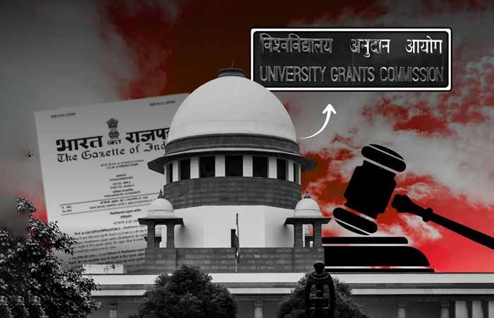 સુપ્રીમ કોર્ટે યુનિવર્સિટી ગ્રાન્ટ્સ કમિશન (ઞૠઈ)ના નવા નિયમો પર આગામી આદેશ સુધી સ્થગિત કર્યા છે. ઈઉંઈં સૂર્યકાંત અને જસ્ટિસ જોયમાલ્યાની બેન્ચે કહ્યું કે આની જોગવાઈઓ અસ્પષ્ટ છે અને તેનો દુરુપયોગ થઈ શકે છે. સુપ્રીમ કોર્ટે કેન્દ્ર સરકારને નિયમોનો ડ્રાફ્ટ ફરીથી તૈયાર કરવાનો નિર્દેશ આપ્યો છે. ઈઉંઈં સૂર્યકાંતે કેન્દ્રને પૂછ્યું, આપણે જાતિવિહીન સમાજની દિશામાં કેટલું હાંસલ કર્યું છે? શું હવે આપણે ઉલટી દિશામાં ચાલી રહ્યા છીએ?