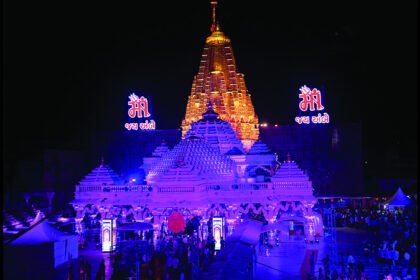 ગૃહ રાજ્યમંત્રી હર્ષ સંઘવી અને DGP વિકાસ સહાયએ અંબાજી મંદિરના શિખર પર…