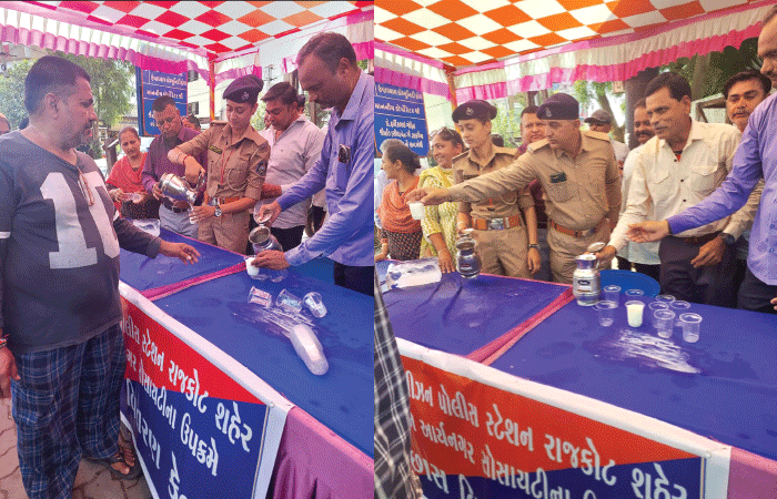 B ડિવિઝન પોલીસ સ્ટેશન રાજકોટ શહેર તથા આર્યનગર સોસાયટીના સંયુક્ત ઉપક્રમે ઠંડી છાસનું વિતરણ