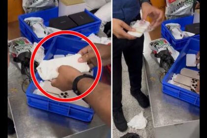 અધિકારીઓ બોક્સમાંથી iPhones સાથે રેપર ખોલતા અને કુલ 12 Apple iPhones એક…