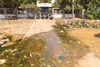 ધ્રાંગધ્રા સરકારી પુસ્તકાલય નજીક ગંદા પાણીનો ભરાવો: નગરપાલિકાની સ્વચ્છતાનો ફિયાસ્કો