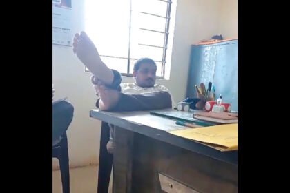 મહિલા તલાટીની હાજરીમાં ટેબલ પર પગ ચડાવી પોતાનો રોફ જમાવતો હોવાનું નજરે…