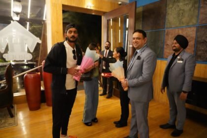 ઈંગ્લેન્ડની ટીમ રાજકોટ હોટલ ફોર્ચ્યૂન ખાતે કુમકુમ તિલક અને હાર પહેરાવીને સ્વાગત…