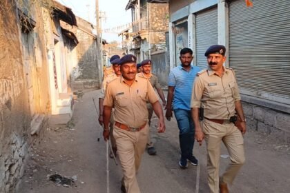 માંગરોળમાં અક્ષત કળશ યાત્રા સમયે એસપી સહિત પોલીસ સ્ટાફનું ફૂટ પેટ્રોલિંગ