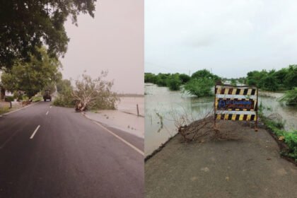 ધસમસતા પાણીના પ્રવાહમાં લોકોને ન પ્રવેશવા સૂચના આપી હોમગાર્ડનો બંદોબસ્ત પણ રસ્તા…