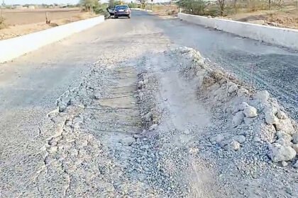 જાફરાબાદના ચિત્રાસર ગામ નજીકથી પસાર થતાં નવાં બનેલા પુલમાં નબળી કામગીરીના કારણે બિસ્માર બન્યો