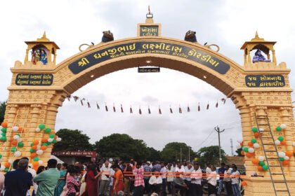 ખોરાસા (ગિર) ગામ ખાતે ભવ્ય પ્રવેશ દ્વારનું નાની બાળાઓના હસ્તે લોકાર્પણ કરાયું