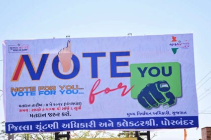 પોરબંદરમાં 6 મોટા હોર્ડિંગ, 130 બેનર અને 1500 જેટલા સ્ટિકર લગાવી સ્વીપ અંતર્ગત મતદાન જાગૃતિનો સંદેશ અપાયો