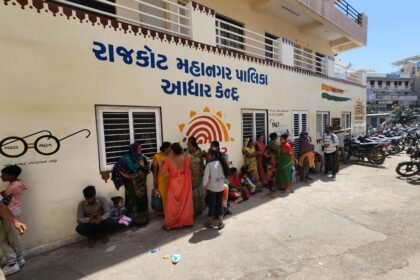 રાજકોટ મનપા આધાર કેન્દ્રમાં અપૂરતાં સ્ટાફના કારણે લાંબી લાઈનો લાગી