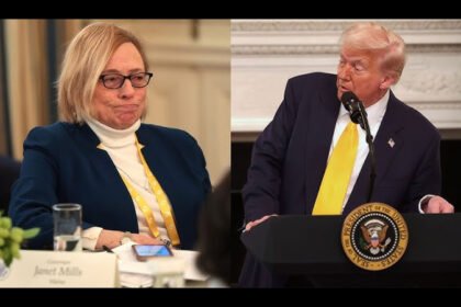 વ્હાઇટ હાઉસમાં બેઠક દરમિયાન અમેરિકી રાષ્ટ્રપતિ ડોનાલ્ડ ટ્રમ્પ અને મેઈનના ડેમોક્રેટિક ગવર્નર…