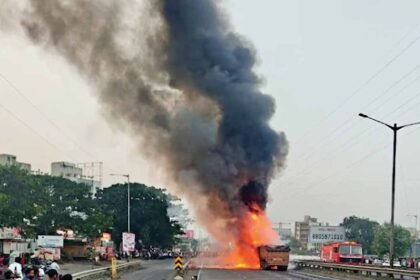 ટ્રકોની વચ્ચે ફસાયેલી ગાડી સળગી, ટ્રકની બ્રેક ફેઇલ થતા દુર્ઘટના મુખ્યમંત્રી દેવેન્દ્ર…
