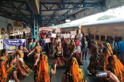જૂનાગઢ એસટી ડેપો, રેલ્વે સ્ટેશન અને મોલમાં લોકશાહીના મહાપર્વે મતદાન જાગૃતિ માટે ગરબાં