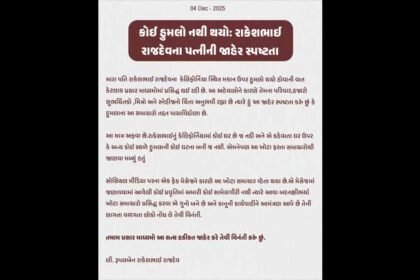 રાકેશ રાજદેવના કેલિફોર્નિયા સ્થિત મકાન પર હુમલાના અહેવાલો પાયાવિહોણા: પત્ની રૂપલબેનની સત્તાવાર સ્પષ્ટતા