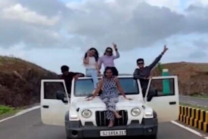 કાર ઉપર બેસી રીલ્સ બનાવનાર ચાર કોલેજિયન છાત્રો સહિત પાંચની ધરપકડ