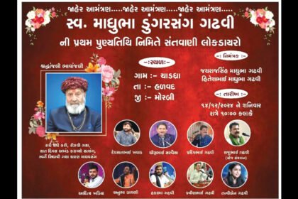 હળવદના ચાડધ્રા ગામે સ્વ.માધુભા ગઢવીની પ્રથમ પુણ્યતિથિ નિમિત્તે ભવ્ય લોકડાયરો