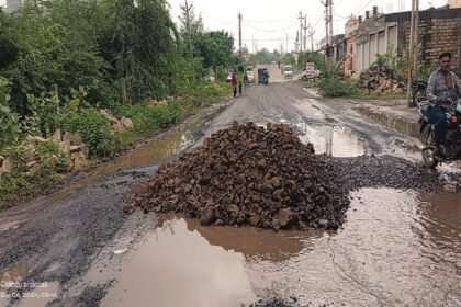 થાનગઢમાં માર્ગ પર માટીનો ઢગલો અકસ્માત નોતરે તેવા એંધાણ
