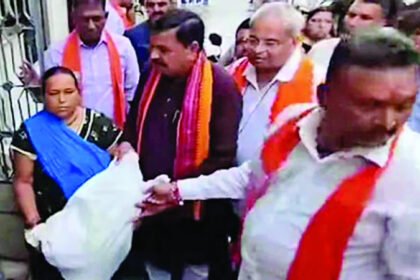 વડોદરામાં લોકોએ શિક્ષણમંત્રી પાસેથી કિટ લેવાનો ઈન્કાર કરી કહ્યું – પાણીના નિકાલનો કાયમી ઉકેલ લાવો