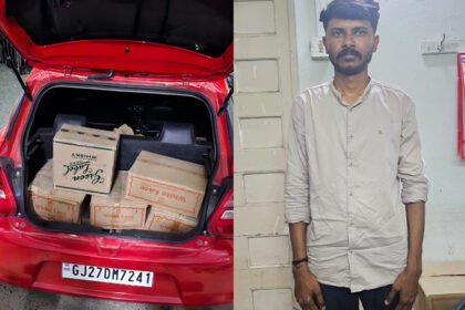 કાર સહિત 5.72 લાખનો મુદામાલ કબજે, બે શખસ નાસી છૂટ્યા દારૂનો જથ્થો…