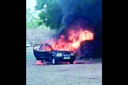 વીરપુર પાસે CNG કારમાં આગ લાગતા કાર બળીને ખાખ