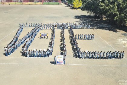 રાજકોટમાં 500 વિદ્યાર્થીઓએ VOTEની માનવઆકૃતિ રચી