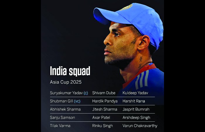 યુનાઈટેડ અરબ અમીરાત (ઞઅઊ)માં આવતા મહિને શરૂ થનારા એશિયા કપ 2025 માટે મંગળવારે (19મી ઓગસ્ટ) ભારતીય ક્રિકેટ ટીમની જાહેરાત કરવામાં આવી છે. આ વખતે ટીમમાં ઘણાં મોટા ફેરફારો કરવામાં આવ્યા છે. મુંબઈમાં રાષ્ટ્રીય પસંદગી સમિતિની બેઠક યોજાયા બાદ એશિયા કપ માટે ભારતીય ટીમના ખેલાડીઓના નામ જાહેર કર્યા છે. ટીમમાં શુભમન ગિલને વાઈસ કેપ્ટન બનાવાયો છે, તો રિંકુ સિંહ પર પણ વિશ્ર્વાસ મૂકી ટીમમાં સમાવેશ કરાયો છે. આ સિવાય ફાસ્ટ બોલર જસપ્રિત બુમરાહને પણ ટીમમાં સામેલ કરાયો છે.