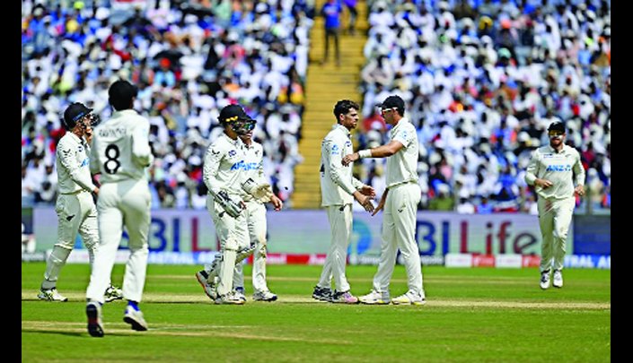 મિશેલ સેન્ટનરે 6 બેટર્સને આઉટ કર્યા હતા. પંત રન આઉટ થયો હતો. ભારતીય ટીમે 37મી ઓવરમાં 167ના સ્કોર પર 7મી વિકેટ પણ ગુમાવી દીધી છે. અહીં વોશિંગ્ટન સુંદર 21 રન બનાવીને આઉટ થયો હતો. તે વિલ યંગના હાથે ગ્લેન ફિલિપ્સની બોલિંગમાં કેચ આઉટ થયો હતો.ભારતીય ટીમે 36મી ઓવરમાં છઠ્ઠી વિકેટ પણ ગુમાવી દીધી છે. સરફરાઝ ખાન (9 રન) મિચેલ સેન્ટનરના હાથે બોલ્ડ થયો હતો. તેને પાંચમી વિકેટ મળી છે. તેણે રોહિત, ગિલ, જયસ્વાલ અને કોહલીને પણ આઉટ કર્યા હતા. ભારતીય ટીમે 150 રનનો આંકડો પાર કરી લીધો છે. સુંદરે 32મી ઓવર ફેંકી રહેલા મિચેલ સેન્ટનરના પ્રથમ બોલ પર ચોગ્ગો ફટકારીને ટીમને 150થી આગળ લઈ ગયો હતો.