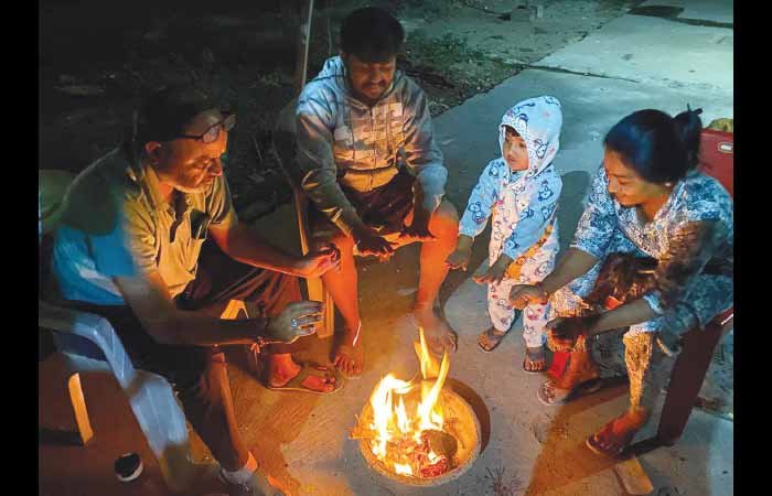 હાડ થીજવતી ઠંડી પડતા લોકોએ તાપણાનો સહારો લીધો