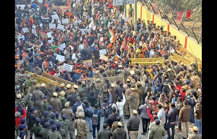 બાંગ્લાદેશમાં હિંદુ યુવકની હત્યા વિરુદ્ધ વિશ્ર્વ હિંદુ પરિષદ (ટઇંઙ) દિલ્હીમાં બાંગ્લાદેશ હાઈ કમિશનની બહાર પ્રદર્શન કરી રહી છે. ટઇંઙ કાર્યકરો સવારે 11 વાગ્યાથી પીડિત પરિવારને ન્યાય અપાવવાની માગ કરી રહ્યા છે. બાંગ્લાદેશમાં 18 ડિસેમ્બરની રાત્રે હિંદુ યુવક દીપુ ચંદ્રની હત્યા કરવામાં આવી હતી. પહેલા એવો દાવો કરવામાં આવી રહ્યો હતો કે દીપુએ ફેસબુક પર ધાર્મિક ભાવનાઓને ઠેસ પહોંચાડતી ટિપ્પણી કરી હતી, પરંતુ પ્રારંભિક તપાસમાં તેનો કોઈ પુરાવો મળ્યો નથી. આ દરમિયાન બાંગ્લાદેશના વિદેશ મંત્રાલયે ભારતીય ઉચ્ચાયુક્ત પ્રણય વર્માને સમન્સ મોકલ્યું છે. એક અઠવાડિયામાં આ બીજી વાર છે, જ્યારે ભારતીય ઉચ્ચાયુક્તને બોલાવવામાં આવ્યા છે. બાંગ્લાદેશી વિદ્યાર્થી નેતા શરીફ ઉસ્માન હાદીના મૃત્યુ પછી ભારત વિરોધી પ્રદર્શનો અને પછી મયમન સિંહ જિલ્લામાં દીપુની મોબ લિંચિંગને કારણે બંને દેશોના સંબંધો ઘણા બગડી ગયા છે.