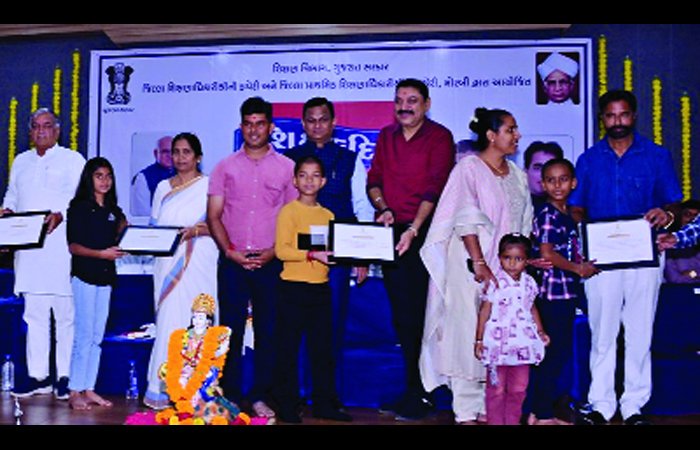 આ કાર્યક્રમમાં જિલ્લા કક્ષાએ 1 અને તાલુકા કક્ષાએ 7 શ્રેષ્ઠ શિક્ષક પારિતોષિક વિજેતા શિક્ષકોનું મહાનુભાવોના હસ્તે પારિતોષિક અર્પણ કરી અને શાલ ઓઢાડી સન્માન કરવામાં આવ્યું હતું. ઉપરાંત જ્ઞાન સાધના પરીક્ષા અને જ્ઞાન સેતુ સહિતની પરીક્ષામાં ઉત્કૃષ્ટ પ્રદર્શન કરનાર 25 પ્રતિભાવશાળી વિદ્યાર્થિને પણ સન્માનિત કરવામાં આવ્યા હતાં. આ પ્રસંગે જિલ્લા પંચાયત પ્રમુખ હંસાબેન પારેઘીએ જણાવ્યું હતું કે, આજનો અવસર ગુરુજનો પ્રત્યે આદર અને આગવું સ્થાન આપી તેમને સન્માનવાનો અવસર છે. એક સારો શિક્ષક એક શ્રેષ્ઠ નાગરીક, સમાજ અને દેશનું નિર્માણ કરે છે. માં બાપ બાદ જીવનમાં શિક્ષકની ભૂમિકા અગત્યની છે જે બાળકને હંમેશા સફળ થતા જોવા ઝંખે છે, બાળકોને ભવિષ્યને સ્વર્ણિમ બનાવવા માટે સતત પ્રયાસો કરે છે.