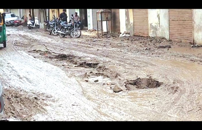 આવું જ કંઈક થયું મોરબીના મહત્વના વિસ્તાર ગણાતા લાતી પ્લોટમાં જી હા, સિઝનના પહેલા જ વરસાદે લાતી પ્લોટ 2 ની હાલત બદથી બદ્તર કરી નાખી છે. રસ્તાઓ પર ચાલીને તો શું વાહન લઈને નીકળવું પણ મુશ્કેલ બન્યું છે, તો અનેક કારખાનાઓમાં પાણી ભરાઈ ગયા છે, અનેક સરસામાનને નુકસાન પણ થયું છે. લાતી પ્લોટમાં પહેલા જ વરસાદમાં રોડ ભયંકર રીતે બેસી ગયો છે ત્યારે સૌથી પહેલા તો તંત્રની લાપરવાહી ભરેલી કામગીરી અંગે અનેક સવાલો ઉભા થઈ જાય છે. જાણે કે માત્ર વરસાદ નહીં પરંતુ વરસાદ સાથે ભૂકંપના આંચકા પણ આવી ગયા હોય તેમ રોડ પર મોટી મોટી તિરાડો પડી ગઈ અને જ્યાં નજર પડે ત્યાં કાદવ, કીચડથી લથબથ રસ્તાઓ જોવા મળે, છોટા હાથી જેવા વાહનો આ રોડમાં ફસાયેલા પણ નજરે ચડ્યા હતા. તો આવા રસ્તેથી ચાલીને કે બાઇક પર નીકળવાની તો વાત જ દૂર રહી. તો આ સમસ્યા આટલાથી જ પૂરી નથી થતી. વરસાદ વરસ્યો કે આ વિસ્તારના કારખાનાઓમાં પણ પાણી ઘૂસી ગયા અને અનેક સામાનને પણ નુકસાન થયું છે.