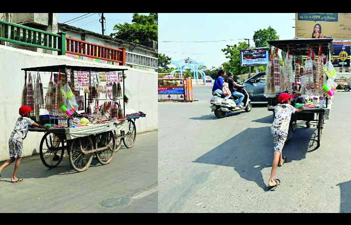 રાજકોટના કિશાનપરા ચોક પાસે પરિવારનું ગુજરાન ચલાવવા બાળક લારી લઇ નીકળી પડે છે