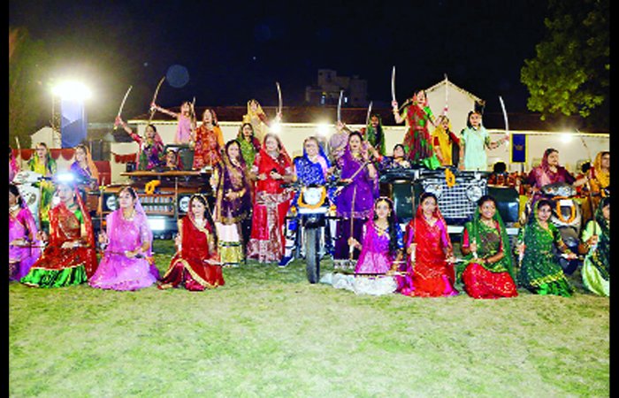 રાજકોટના રાજવી પેલેસમાં બન્ને હાથમાં તલવાર લઈ 150 મહિલા રાસ રમી, બાઇક-જીપ પર કરતબો દેખાડ્યાં