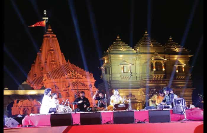 વડાપ્રધાન નરેન્દ્રભાઈ મોદીની પ્રેરણાથી તા.8 જાન્યુઆરી થી પ્રભાસ તીર્થની પુણ્યભૂમિ પર ઋષિ કુમારોના શંખનાદ અને 72 કલાકના ઓમકારની ગૂંજ વચ્ચે શરૂ થયેલા ભક્તિ, શૌર્ય અને સંસ્કૃતિના ત્રિવેણી સંગમ સમા ‘સોમનાથ સ્વાભિમાન પર્વ’ની સંગીતમય સંધ્યાથી પૂર્ણાહૂતી થઈ હતી. સોમનાથ પર ગઝનવીના આક્રમણના 1000 વર્ષ અને મંદિર જીર્ણોદ્ધારના 75 વર્ષના સુભગ સમન્વય અંતર્ગત યોજાયેલા આ પર્વના અંતિમ દિવસે લોકગાયક અલ્પા પટેલે કોકિલકંઠી સૂરોથી શિવ આરાધના કરતાં શ્રદ્ધાળુઓ મંત્રમુગ્ધ બન્યાં હતાં. અલ્પા પટેલે પોતાના કોકીલકંઠી અવાજમાં ’જય સોમનાથ’ ના અભિવાદન સાથે ’સૌરાષ્ટ્રે સોમનાથ….’, ’મુજે દર્શન દો ભોલેનાથ….’, ’રામ સીયા રામ… જય જય રામ’, ’શૈલશુંગ સમ વિશાલ, જટાજૂટ ચંદ્રભાલ….’, ’આરંભ હૈ પ્રચંડ બોલે મસ્તકો કે ઝૂંડ…’ ’હર હર શંભુ ભોળા….’ સહિતની અનેક પ્રસ્તુતિઓ રજૂ કરી હતી. અલ્પા પટેલે વીરરસભર્યા લોકગીત રજૂ કરી ભારતમાતાની રક્ષા કરતા શૂરવીર સૈનિકોને તેમજ સોમનાથની સખાતે ચડેલા હમીરજી ગોહિલ સહિતના યોદ્ધાઓ અને જેના થકી સોમનાથનો જીર્ણોદ્વાર શક્ય બન્યો એવા લોખંડી પુરૂષ સરદાર વલ્લભભાઈ પટેલ સહિતના વીર વ્યક્તિત્વનું પણ ભાવસ્મરણ કર્યું હતું.