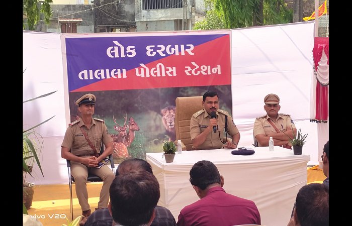 તાલાલા પોલીસ સ્ટેશનના વાર્ષિક ઇન્સ્પેક્શન પ્રસંગે જિલ્લા પોલીસ વડા તથા ડી.વાય.એસ.પી વી.આર ખેંગારની ઉપસ્થિતિમાં લોક દરબાર યોજાયો હતો.પોલીસ સ્ટેશન ની કામગીરી થી લોકદરબારમાં ઉપસ્થિત અગ્રણીઓને અવગત કરતા એસ.પી.એ જણાવ્યું હતું કે તાલાલા વિસ્તારમાં ક્રાઈમ રેટ ઓછો થયો છે.આ માટે પોલીસની સાથે પ્રજા પણ અભિનંદનના અધિકારી છે.તાલાલા વિસ્તાર હોટલ,રિસોર્ટ અને ફાર્મ હાઉસો થી ધમધમે છે.આ વિસ્તાર ટુરિસ્ટ વિસ્તાર છે.આ વિસ્તારમાં અસામાજિક બદી પ્રસરે નહીં માટે તાલાલા પોલીસ,એલ.સી.બી અને એસ.ઓ.જી સક્રિય ક્રમશ:કામગીરી કરી રહી છે.આ વિસ્તારને અસામાજિક બદી વિસ્તાર બનતો અટકાવવા પોલીસ નું નેટવર્ક કામગીરી કરે છે પણ પ્રવાસન વિસ્તાર મોટો હોય પોલીસ નું નેટવર્ક ઘણી વખત ટૂંકું પડે છે માટે પ્રજા પણ નેટવર્ક ગોઠવી પોલીસને ઉપયોગી બનવા જાગૃત બનવું જરૂૂરી છે.
