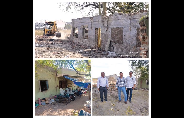 મામલતદાર રાજકોટ શહેર પૂર્વ એસ.જે.ચાવડા તથા તેમની ટીમ દ્વારા આજરોજ સરકારી 5ડતર જમીનમાં થયેલ ગેરકાયદેસર દબાણો દૂર કરવામાં આવ્યા. જેમાં વિશાળ જગ્યામાં બનાવવામાં આવેલ સાડીનું કારખાનું, 4 ઓરડીઓ, ચા-પાનની દુકાનો, કારખાનાના મજૂરો માટેના 4 રૂમો, નર્સરી વિગેરે દૂર કરવામાં આવ્યા અને સરકારી જમીન ખુલ્લી કરાવવામાં આવી હતી.