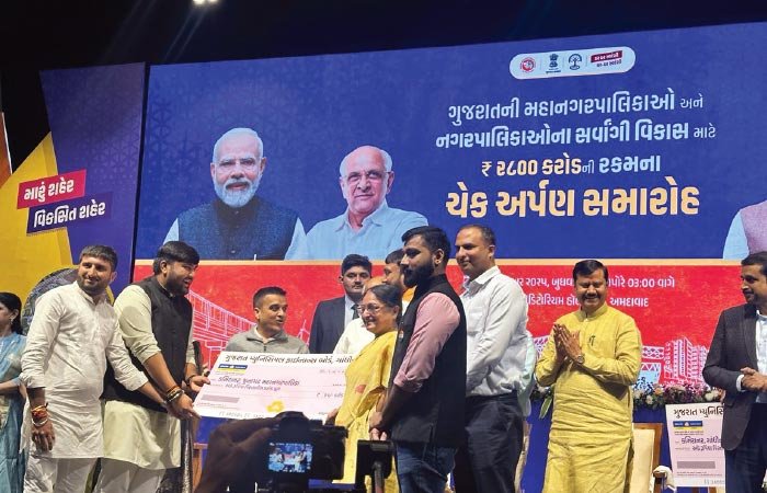 અમદાવાદ ખાતે આયોજિત આ વિશેષ કાર્યક્રમમાં રાજ્યના મુખ્યમંત્રી ભૂપેન્દ્રભાઈ પટેલના વરદ હસ્તે અને નાયબ મુખ્યમંત્રી હર્ષભાઈ સંઘવીની પ્રેરક ઉપસ્થિતિમાં વિવિધ સ્થાનિક સ્વરાજ્યની સંસ્થાઓને કુલ રૂ. 2800 કરોડના ચેક અર્પણ કરવામાં આવ્યા હતા. આ યોજના અંતર્ગત જૂનાગઢ શહેરના આંતરમાળખાકીય વિકાસ માટે રૂ. 45 કરોડનો ચેક એનાયત કરવામાં આવ્યો હતો. આ સમારોહમાં મેયર ધર્મેશ ડી. પોંશીયા, કમિશનર તેજસ પરમાર, ડે. મેયર આકાશભાઈ કટારા, સ્થાયી સમિતિ ચેરપર્સન પલ્લવીબેન ઠાકર સહીત જૂનાગઢ મહાનગરપાલિકાના ઉચ્ચ પદાધિકારીઓ અને અધિકારીઓનું પ્રતિનિધિમંડળ હાજર રહ્યું હતું, આ ફાળવવામાં આવેલી રૂ. 45 કરોડની ગ્રાન્ટનો ઉપયોગ જૂનાગઢ શહેરમાં રસ્તા, પાણી, ડ્રેનેજ, સ્ટ્રીટ લાઈટ અને અન્ય જનસુખાકારીના પ્રોજેક્ટ્સ માટે કરવામાં આવશે. આ માતબાર રકમ મળવાથી શહેરના અટકેલા કે નવા આયોજિત વિકાસ કામોને ગતિ મળશે.