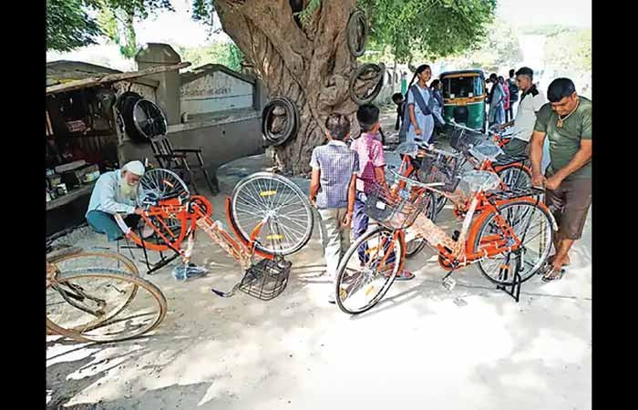 ખરા તડકામાં સાઈકલો ઢસડીને જવું પડ્યું પંચરની દુકાને: સરકારી યોજનાની ગુણવત્તા પર સવાલ