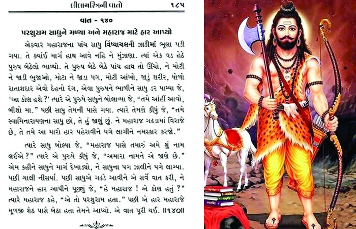 સ્વામિનારાયણ સંપ્રદાયના ‘લીલાચરિત્રની વાતો’ પુસ્તકમાં પરશુરામ ભગવાનનું અપમાન થયું