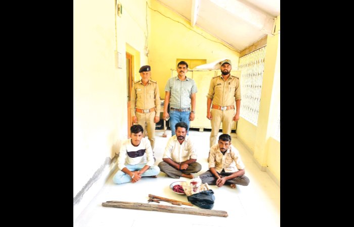 ધારી વનવિભાગે જસાધાર રેન્જના કાર્યક્ષેત્ર હેઠળની જસાધાર રાઉન્ડની ધોકડવા રેવન્યુ બીટના કાર્યક્ષેત્રના જુનાઉગલા રેવન્યુ ગામે પ્લોટ વિસ્તારમાં આવેલ સામતભાઇ બચુભાઇ રાઠોડના રહેણાંક મકાનમાં વન્યજીવ સસલાનો શિકાર કરી સસલાનું માંસ રાખેલ હોવાની બાતમી મળી હતી. વનવિભાગે બાતમીના આધારે ગઇકાલે વહેલી સવારે રાજદિપસિંહ ઝાલા,નાયબ વન સંરક્ષક ઘારી તથા એમ.આર.ઓડેદરા, મદદનિશ વન સંરક્ષક ઉનાના સીધા માર્ગદર્શન હેઠળ એલ.બી.ભરવાડ, રેન્જ ફોરેસ્ટ ઓફીસર જસાધાર દ્વારા વી.આર.ચાવડા,વનપાલ જસાધાર, આર.બી.વાળા, વનપાલ તુલશીશ્યામ આર.એસ.સારલા, ફો.ગાર્ડ એન.આર.જોગાણી ફો.ગાર્ડ ખજુરી કુ.વર્ષાબેન ખરાડી ફો.ગાર્ડને સાથે રાખી તાત્કાલીક સ્થળ પર પહોંચ્યા અને સ્થળ ચકાસણી કરતા જુનાઉગલા ગામે (1)સામતભાઈ બચુભાઇ રાઠોડ રહે.જુના ઉગલા, (ર)ભરતભાઇ જેરામભાઈ શિયાળ રહે.જુના ઉગલા (3)નાગભાઈ દિપુભાઇ સોલંકી રહે.આંબલીયાળા તા.ખાંભા વાળા રહેણાંક મકાનમાં શિકાર કરી લાવેલ સસલાને છરી, કુહાડા દાતરડા વડે કાપી સસલાનું માંસ કાઢતા રંગેહાથે ઝડપાતા આ ત્રણેય ઇસમો સામે વન્યપ્રાણી સંરક્ષણ ધારા-1972 હેઠળ ધોરણસર ગુન્હો નોંઘી એડવાન્સ રીકવરી પેટે રૂ.1,05,000 (એક લાખ પાંચ હજાર પુરા) વસુલી ત્રણેય આરોપીઓને જામીન પર મુકત કરેલ છે.