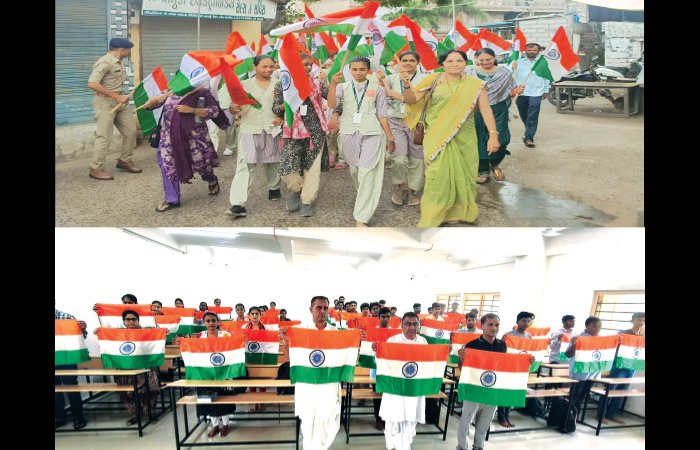 15મી ઓગસ્ટ પહેલા ગીર સોમનાથ જિલ્લામાં અનેકવિધ કાર્યક્રમો થકી તિરંગાનું મહત્વ અને ભારતીય એકતાને અભિવ્યક્ત કરતા કાર્યક્રમો થકી દેશભક્તિ પ્રબળ બની છે. શ્રી સોમનાથ સંસ્કૃત યુનિવર્સિટી ખાતે આવો જ એક દેશભક્તિસભર કાર્યક્રમ “હર ઘર તિરંગા, હર ઘર સ્વચ્છતા, સ્વતંત્રતા કા ઉત્સાહ, સ્વચ્છતા કે સંગ-2025” યોજાયો હતો. અનુસ્નાતક વિભાગ અને સંસ્કૃત કોલેજમાં “હર ઘર તિરંગા, હર ઘર સ્વચ્છતા, સ્વતંત્રતા કા ઉત્સાહ, સ્વચ્છતા કે સંગ -2025 ” અંતર્ગત વિદ્યાર્થીઓ અને પ્રાધ્યાપકશ્રીઓના આ કાર્યક્રમમાં એન.એસ.એસ. પ્રોગ્રામ કો-ઓર્ડીનેટર અને પ્રોગ્રામ ઓફિસર ડો. જે.ડી.મુંગરા દ્વારા તિરંગા સેલ્ફી, હર ઘર સ્વચ્છતા, તિરંગા યાત્રા, દેશભક્તિ રંગોળી અને ‘હરઘરતિરંગા.કોમ’ પર પોતાની સેલ્ફી અપલોડ કરવા જેવી બાબતો પર માર્ગદર્શન આપવામાંઆવ્યુંહતું.