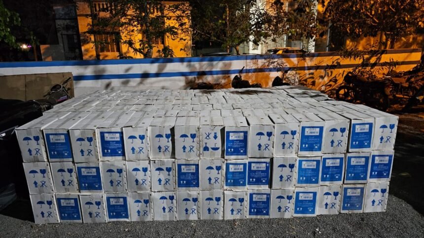 રાજકોટ જિલ્લામાં દારૂની હેરાફેરી ઉપર ખાસ વોચ રાખવાની સૂચના અન્વયે ગોંડલ તાલુકા પોલીસ મથકના પીએસઆઈ જે એમ ઝાલા અને ટીમ પેટ્રોલિંગમાં હતી દરમિયાન ગોંડલ તાલુકાના શેમળા પાસે આવેલ અવધ ઇન્ડસ્ટ્રીયલના ગેઇટ પાસેથી બાતમી આધારે ટ્રકને રોકી ચેક કરતા, ભારતીય બનાવટની ઇગ્લીશ દારૂની અલગ-અલગ બ્રાન્ડની 4188 બોટલો કિં રૂ. 12,56,400/- એક ટ્રક કિં રૂ. 10 લાખ મળી કુલ 22,66,400/-ના મુદામાલ સાથે ગોંડલની શિવશક્તિ સોસાયતીનો ધર્મેશ ઉર્ફે ધમો મનસુખ મકવાણા અને ગોંડલ વોરા કોટડા રોડ પર સરકારી આવાસમાં રહેતો સાદીક ઉર્ફે સાવજ જાની દલ મળી આવતા ધરપકડ કરી પ્રોહીબીશન એક્ટ હેઠળ કાર્યવાહી કરવામા આવેલ છે.
