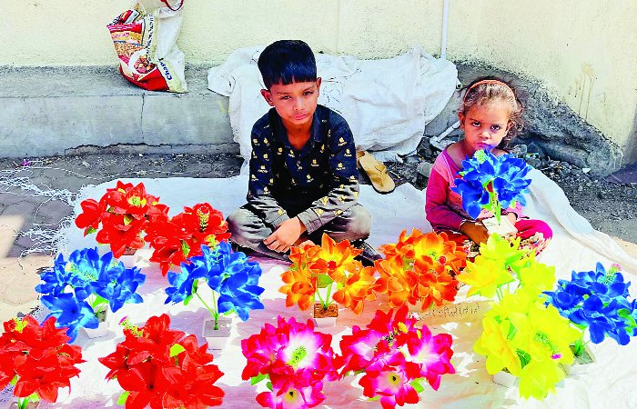 ક્યારેય પણ ફૂલ ફૂલને વહેંચતા જોયા છે? આ તસવીર કે જેમાં દેખાય છે કે નાના બે ફૂલ જેવા બાળકો આર્ટિફીશ્યલ ફૂલો વહેંચી રહ્યા છે. દિવાળીની સારી રીતે ઉજવણી દરેકને કરવી હોય છે ત્યારે આ બંને નાના બાળકો તડકામાં બેસીને ફૂટપાથ પર વિવિધ કલરફૂલ ફૂલો વહેંચી રહ્યા છે. આ નાના બે ફૂલ જેવા બાળકો જાણે ઘણું બધું કહી જતાં હોય તેવું લાગી રહ્યું છે. એક બાળક કે જે નિંદર કરી રહ્યો છે ત્યારે બીજી નાની ફૂલ જેવી બાળકી જાણે ગ્રાહકોને કહેતી હોય કે અમારી પાસેથી પણ ફૂલોની ખરીદી કરો અમારી દિવાળી પણ સુધરી જાય.