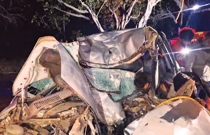 મોડી રાત્રે કેશોદ નજીક એક કાર ઝાડ સાથે અથડાતાં 2 યુવકોના મોત નિપજ્યાં હતાં જયારે 2 યુવકોને ગંભીર ઇજા પહોંચતાં કેશોદ બાદ જૂનાગઢ સારવાર માટે ખસેડાયાં હતાં. કાર ચાલકે સ્ટિયરિંગ પર કાબૂ ગુમાવતાં કાર ઝાડ સાથે અથડાઈ હતી. નમાંગરોળ તાલુકાના કંકાણા ગામનાં ઉમેશભાઈ જેરામભાઈ ડાભી, તેના ભાઈઓ ચંદુભાઈ, ભરતભાઈ અને જયદીપભાઇ પરિવાર સાથે કેશોદમાં એરપોર્ટ રોડ પર રહેતા પિતરાઈ સાહિલના લગ્ન પ્રસંગે આવ્યા હતા. મંગળવારની રાત્રિના જુનાગઢ રહેતા વિશાલભાઈ અશોકભાઈ સોલંકી, મયુરભાઈ શુભમભાઈ સોલંકી, કંકાણા ગામના ચંદુભાઈ જેરામભાઈ ડાભી તથા કેશોદ પાસેના કેવદ્રા ગામના વિજયભાઈ અમૃતભાઈ સોલંકી લગ્ન પ્રસંગેથી વિશાલભાઈની જીજે 02 આર 9298 નંબરની કારમાં કેશોદ બાયપાસ રોડ પર નાસ્તો કરવા ગયા હતા. તે વખતે જૂનાગઢ રોડ પર આહિર સમાજની વાડી પાસે વિશાલભાઈએ કારના સ્ટિયરિંગ પરથી કાબુ ગુમાવતા કાર ઝાડ સાથે અથડાઈ હતી.