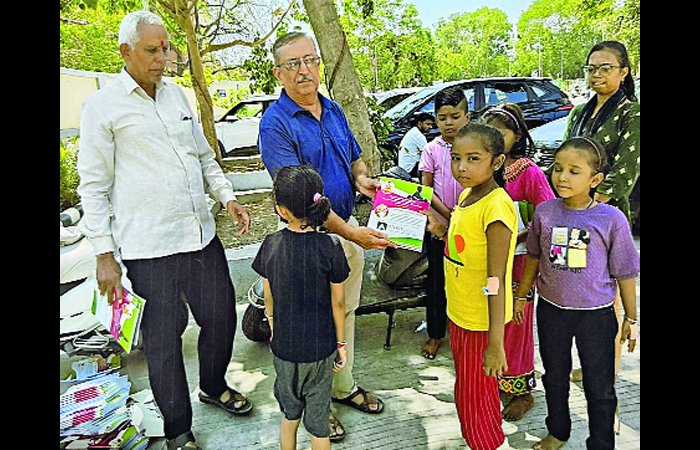 જે અંતર્ગત સોમૈયા પરિવારના દિલીપભાઈ, યોગેશભાઈ, આશિષભાઈ, અંકીતભાઈ તરફથી શહેરની સેવા સંસ્થા વિવેકાનંદ યુથ કલબના સહયોગથી 500 થેલેસેમિયાપીડિત બાળકોને દરેકને ચાર લેખે બે હજાર ચોપડાનું વિતરણ કરવામાં આવ્યું હતું. આ સેવા કાર્યમાં સંસ્થાના અનુપમ દોશી, પંકજ રૂપારેલીયા, હસુભાઈ શાહ, રમેશ શીશાંગીયા, કોમુ માજી, પ્રતિમાબેન જીવરાજાની, ઉમાબેન ઘાવરી, કીર્તિદાબેન યાદવ વગેરે સહભાગી